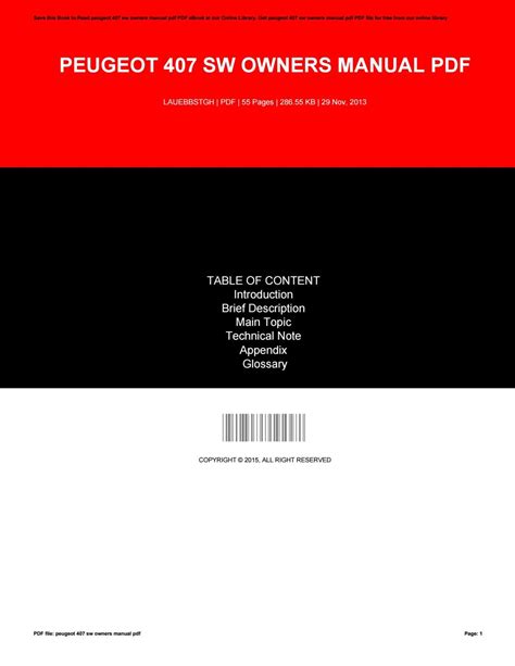 Online PDF USER MANUAL PEUGEOT 407 SW PDF Gutenberg